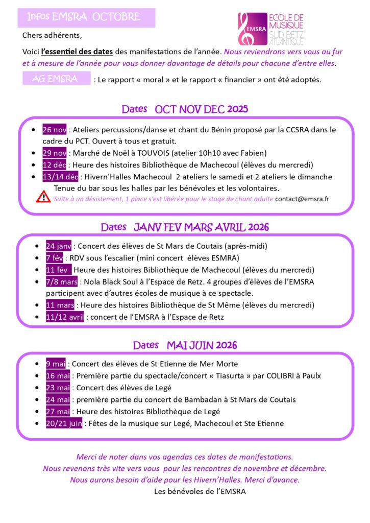 Infos d’octobre